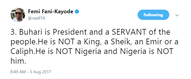According to FFK, no matter the number of Priests who visit the sick Nigerian President, his rejection by God still stands. Here are his tweets;